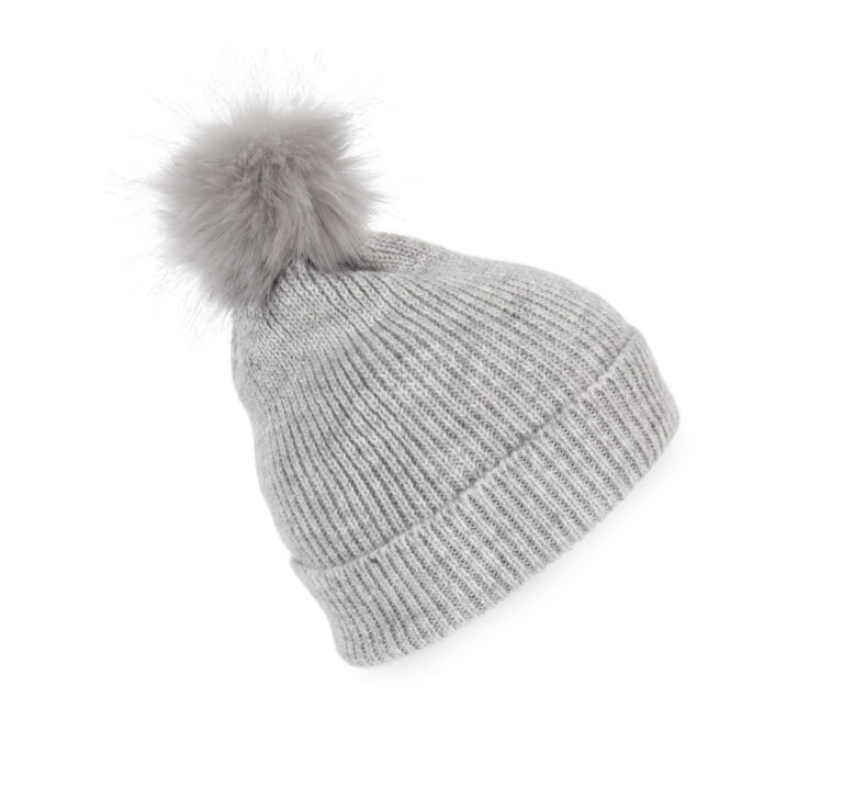 Pomponmuts, gebreid met gerecycled garen. - KP555 - 70% Polyester, 30% Acryl
