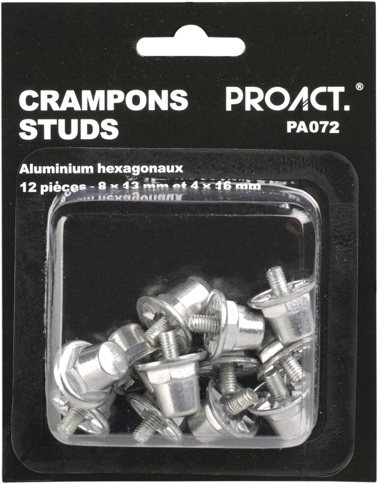 De studs van PROACT® zijn de ideale oplossing voor het personaliseren van uw sportschoenen. Met een verpakking van 12 zeshoekige aluminium noppen in afmetingen van 8x13mm en 4x16mm, biedt dit product een uitstekende combinatie van stijl en functionaliteit.